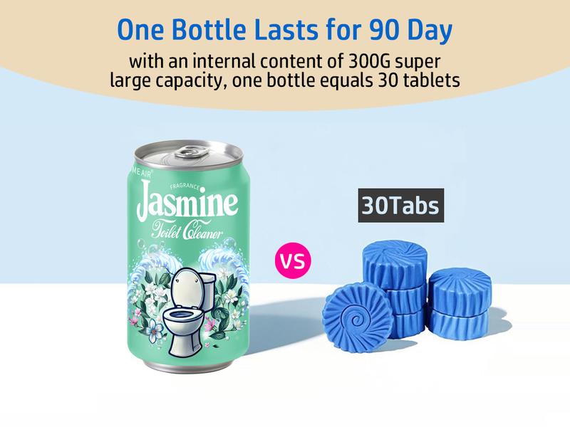 【EASY TO USE & SEPTIC SAFE】: Remove the outer packaging and place a bottle into the toilet tank. Let it sink and sit for 10 minutes to dissolve. When the water turns blue, it is ready to use. This toilet bowl cleaner also functions as a toilet tank cleaner, cleaning and preventing stain build up for your toilet's entire system.that refresh your bathroom with every flush! Each bottle lasts up to 3 months and comes in distinct colors: Blue (Ocean Fragrance), Pink (Peach Fragrance), and Green (Jasmine Fragrance). With one bottle for every season, a set of three bottles provides up to 9 months of continuous cleaning and refreshing fragrance, ensuring your toilet stays clean and smelling great all year round.【THREE COLORS & LONG-LASTING FRAGRANCES】: Choose from three delightful scents that refresh your bathroom with every flush! Each bottle lasts up to 3 months and comes in distinct colors: Blue (Ocean Fragrance), Pink (Peach Fragrance), and Green (Jasmine Fragrance). With one bottle for every season, a set of three bottles provides up to 9 months of continuous cleaning and refreshing fragrance, ensuring your toilet stays clean and smelling great all year round.