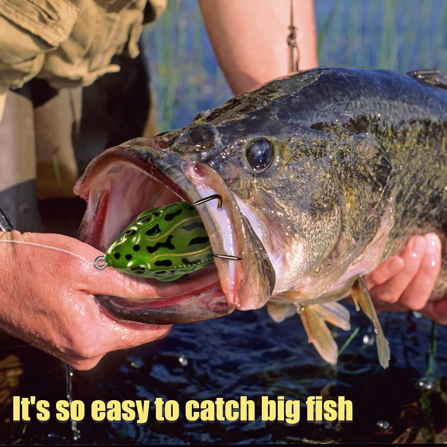 Dominate the Waters: Tired of losing battles to trophy fish? Gear up with our ferocious frog lure, designed to trigger explosive strikes and land you the catch of a lifetime! Lifelike Realism: Crafted from durable PVC and soft silicone, this frog lure delivers an irresistible swimming action, fooling even the wisest predators.