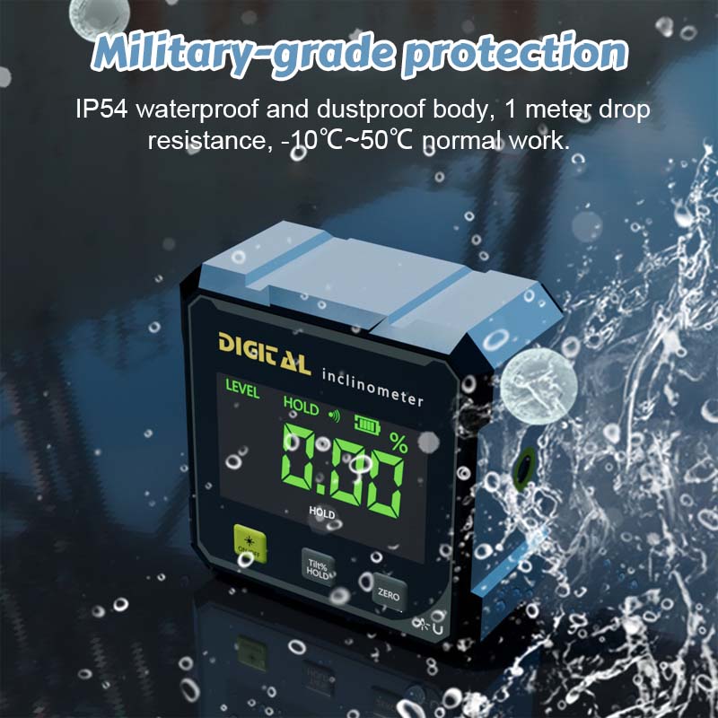 This electronic level meter integrates strong magnetic adsorption, laser positioning and digital measurement, 0.1° high precision display, 1 laser-assisted leveling.IP54 waterproof and dustproof, LED backlight night vision, easy to cope with the needs of renovation, engineering and other full-scene accurate measurement!