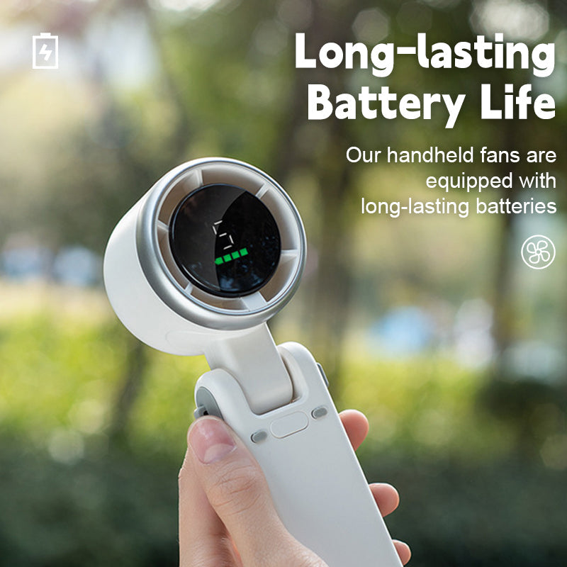 🔋 Long-lasting Battery Life: Worried about running out of juice? Fret not! Our handheld fan comes with a long-lasting battery that keeps the cool breeze flowing for hours on end. Simply recharge via USB and you're good to go!