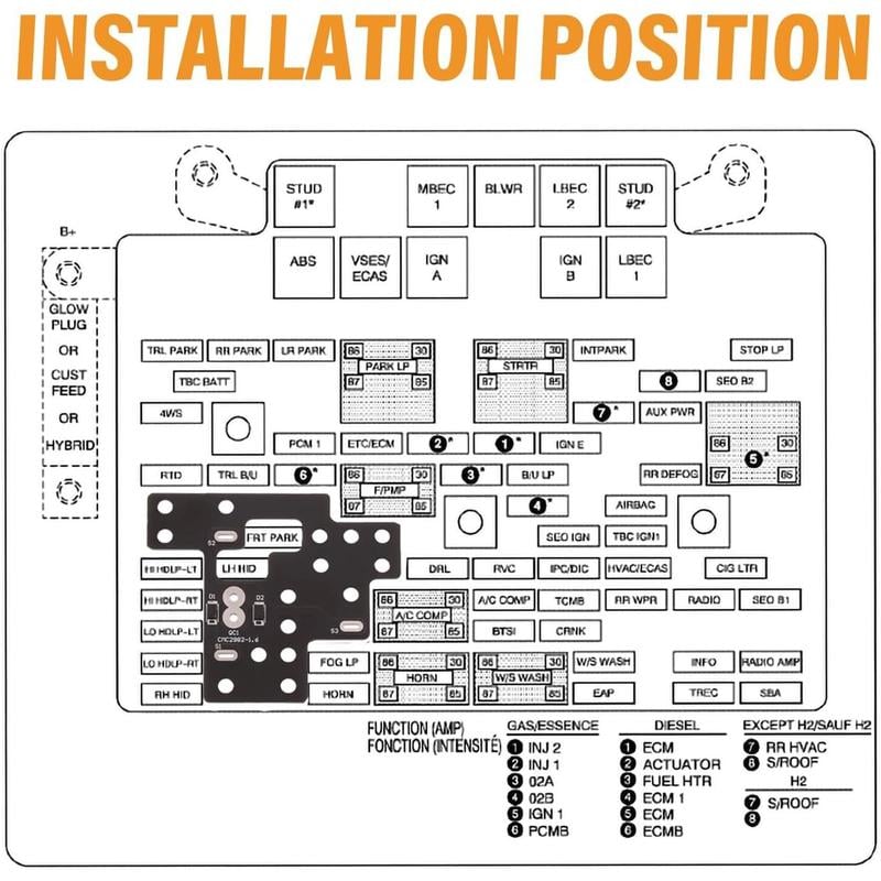 Check your fuse box layout against our diagram to ensure proper fit for your lighting module installation