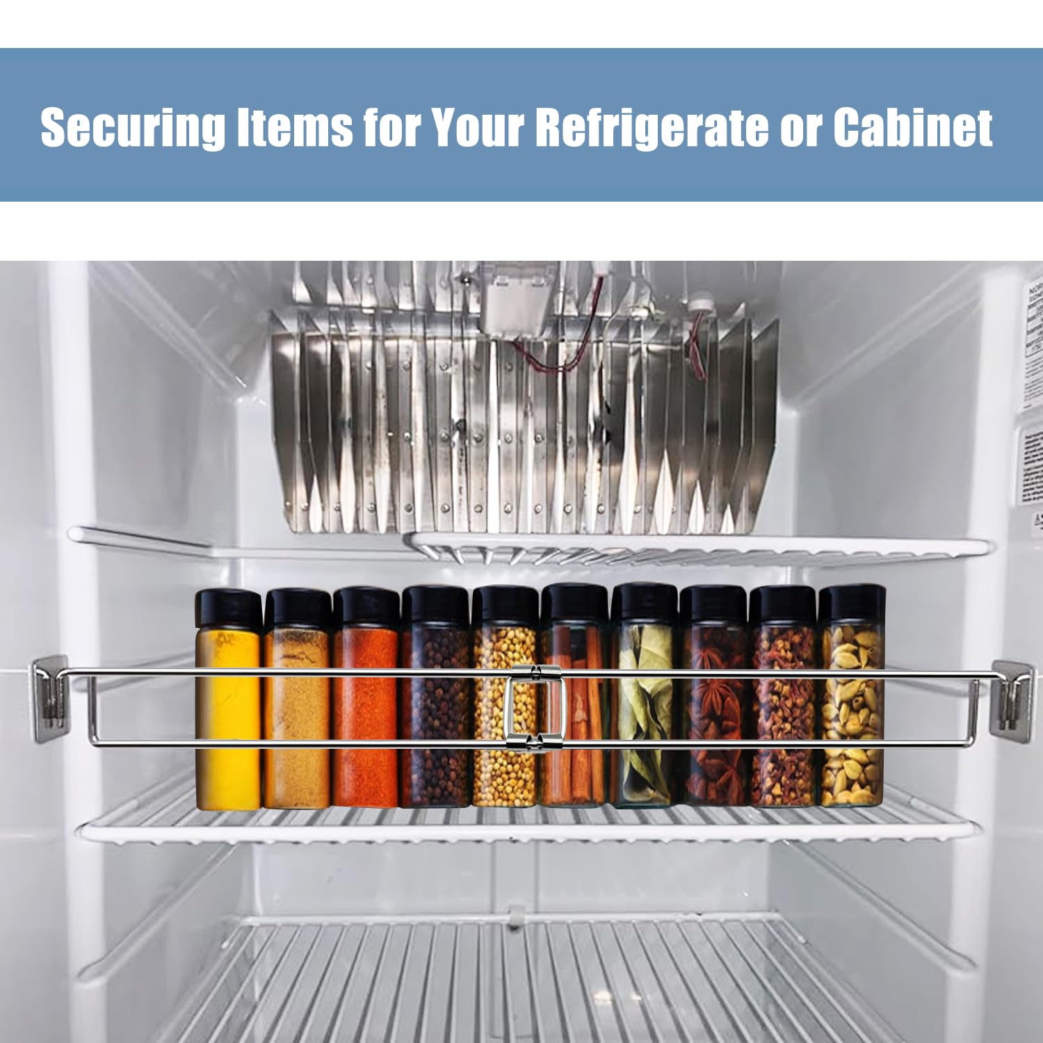 【Rustproof stainless steel】Made of durable and rust-resistant stainless steel, resistant to corrosion. Compared to other products made of plastic, our stainless steel storage shelves are perfect for refrigerator's humid and low-temperature environments, which can keep your RV refrigerator neat and organized for a long time without having to replace the RV fridge storage bar frequently.