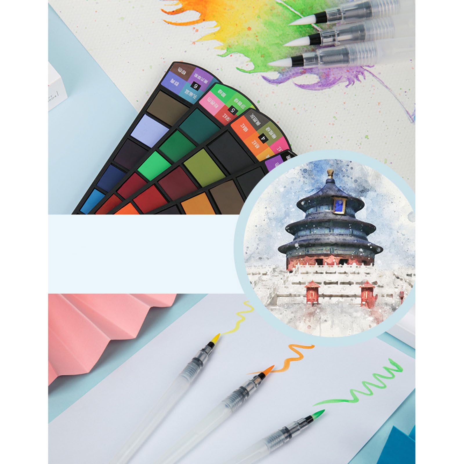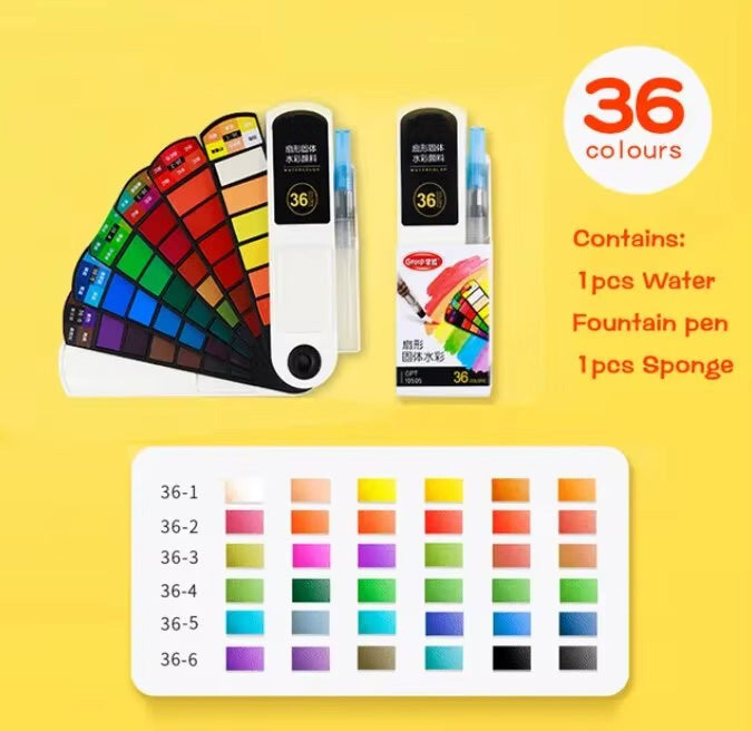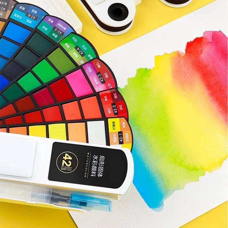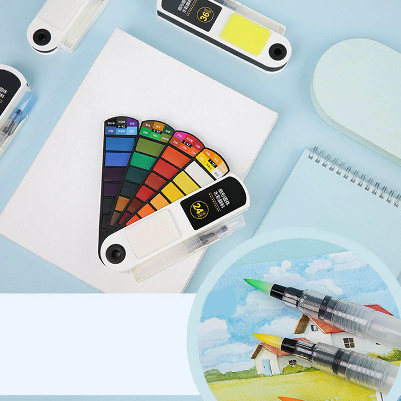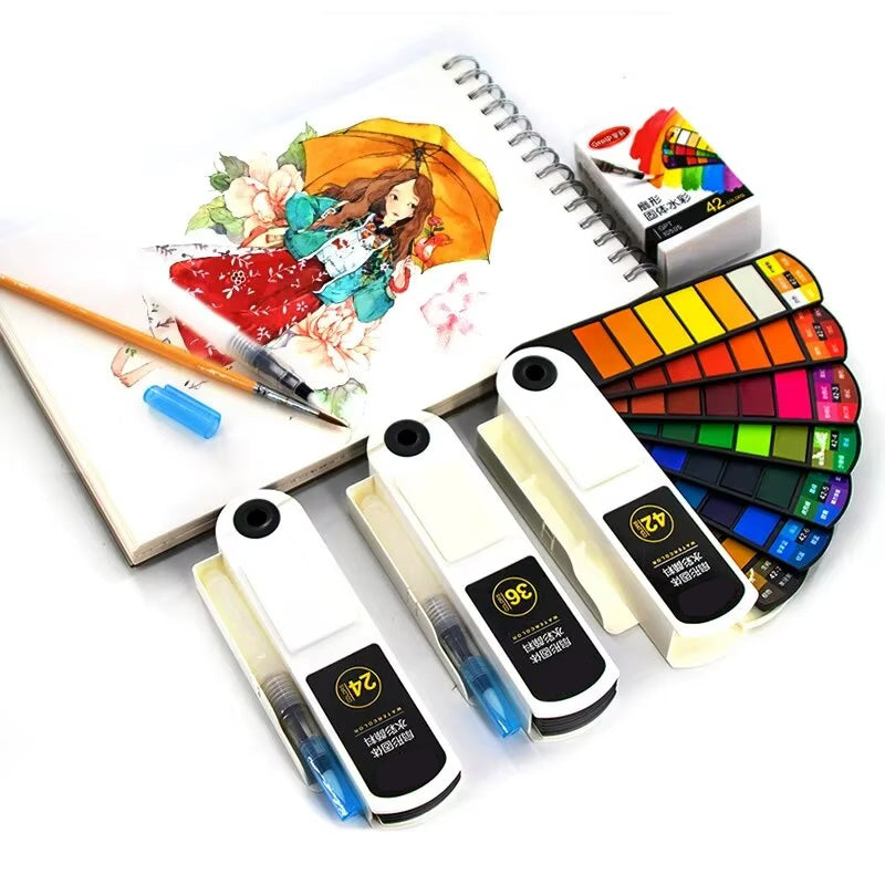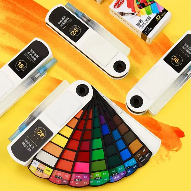 18/24/36/42 Colors Solid Pigment: Package comes with 24 color (OR 18/36/42 color) solid watercolor paint, refillable water brush pen and sponge. Portable solid watercolor paint set very suitable for Professional painter, beginner, artist, student and children. Help add to your works of art.