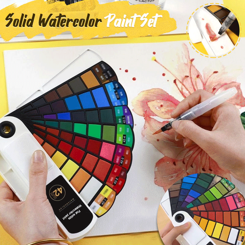 🎨Solid Watercolor Paint Set With Water Brush Pen Sponge