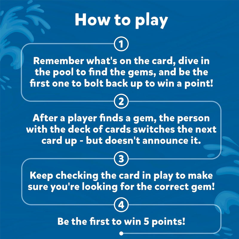 This ultimate underwater search and find game is the perfect accessory for summer gatherings and pool parties. Players dive into the water to find gems according to the clues on the cards. Whoever surfaces the fastest and finds the gems correctly will get points. The game is full of excitement, not only testing the player's swimming speed, but also testing memory and observation, making it both intense and fun to play. Easy to carry and store, bring it to make your summer party more fun.