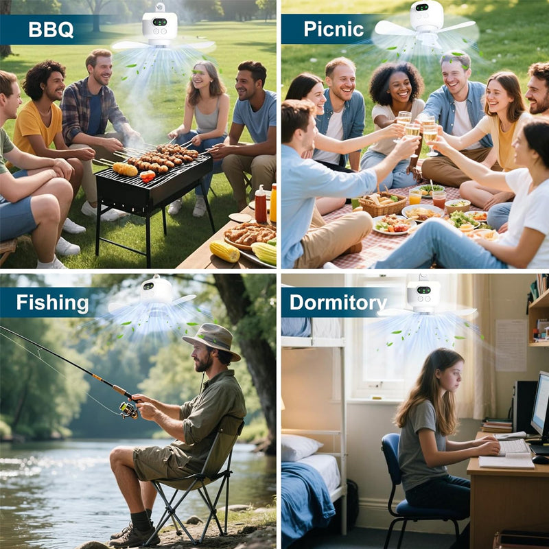 This wireless remote control outdoor small ceiling fan is designed for portable scenes such as camping, dormitory, and car, and supports USB charging and plug-in. Lightweight and portable but with strong wind, it is more convenient to operate with remote control, with long battery life and low noise. It is an indispensable cool artifact for summer travel and daily life.
